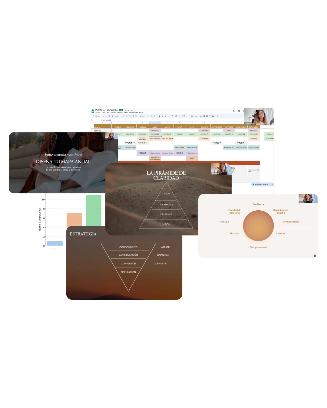 ✔ Saber qué errores te sabotean al planificar y cómo evitarlos. ✔ Ubicarte con claridad: dónde estás hoy y hacia dónde vas. ✔ Definir objetivos y focos de acción realistas. ✔ Visualizar todo en un mapa que podrás revisar y ajustar durante el año. ✔ Dejar de sentirte detrás del calendario. Porque ahora tendrás el control.